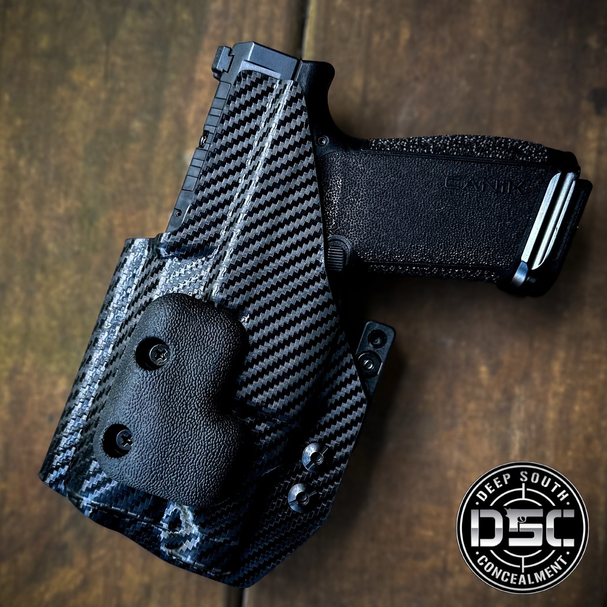 Our IWB holsters are handcrafted from high quality .080 thick material for long lasting durability while maintaining comfort and firearm protection in a lightweight design. Each holster comes standard with adjustable retention that allows adjustment to preference. If you need any help with your order or have questions, please feel free to contact us. *All of our products are warrantied against manufacturing defects.
