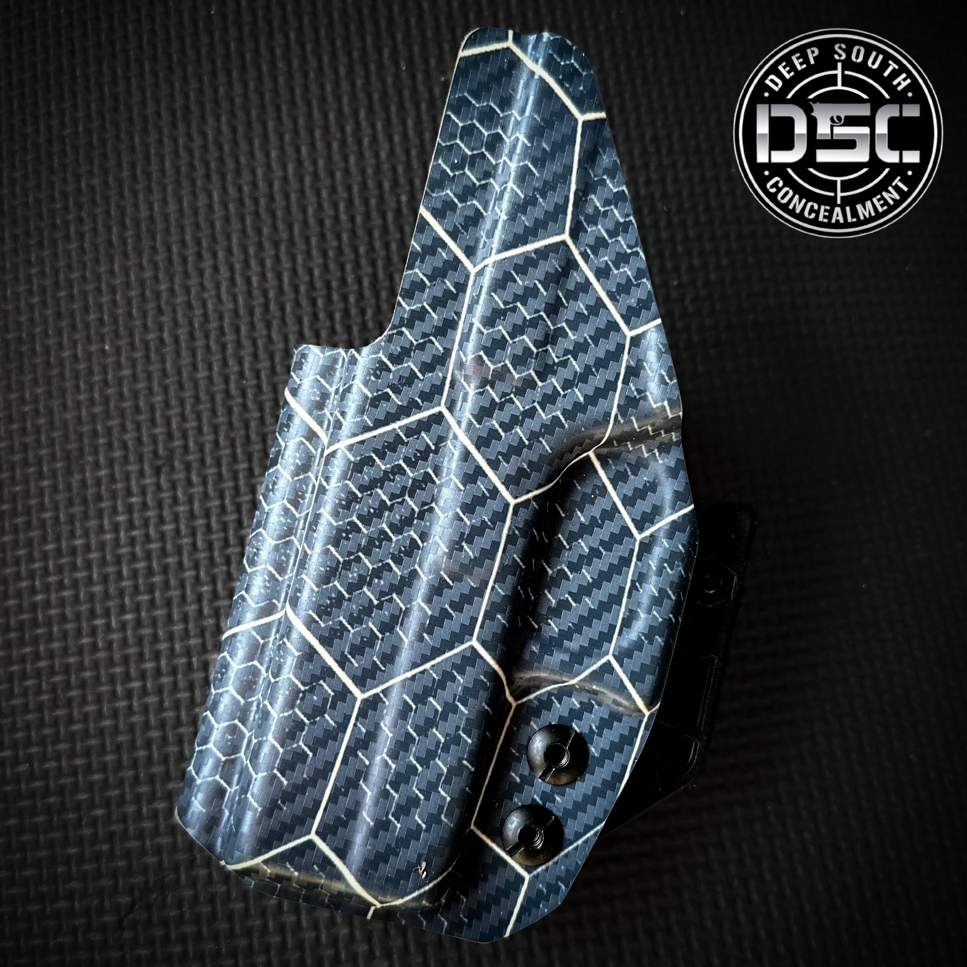 Glock 43/43X MOS Blue/Tan Hex Carbon Fiber RH IWB Holster