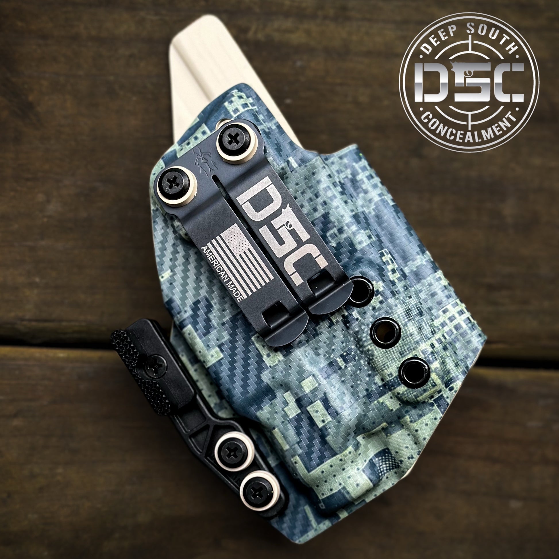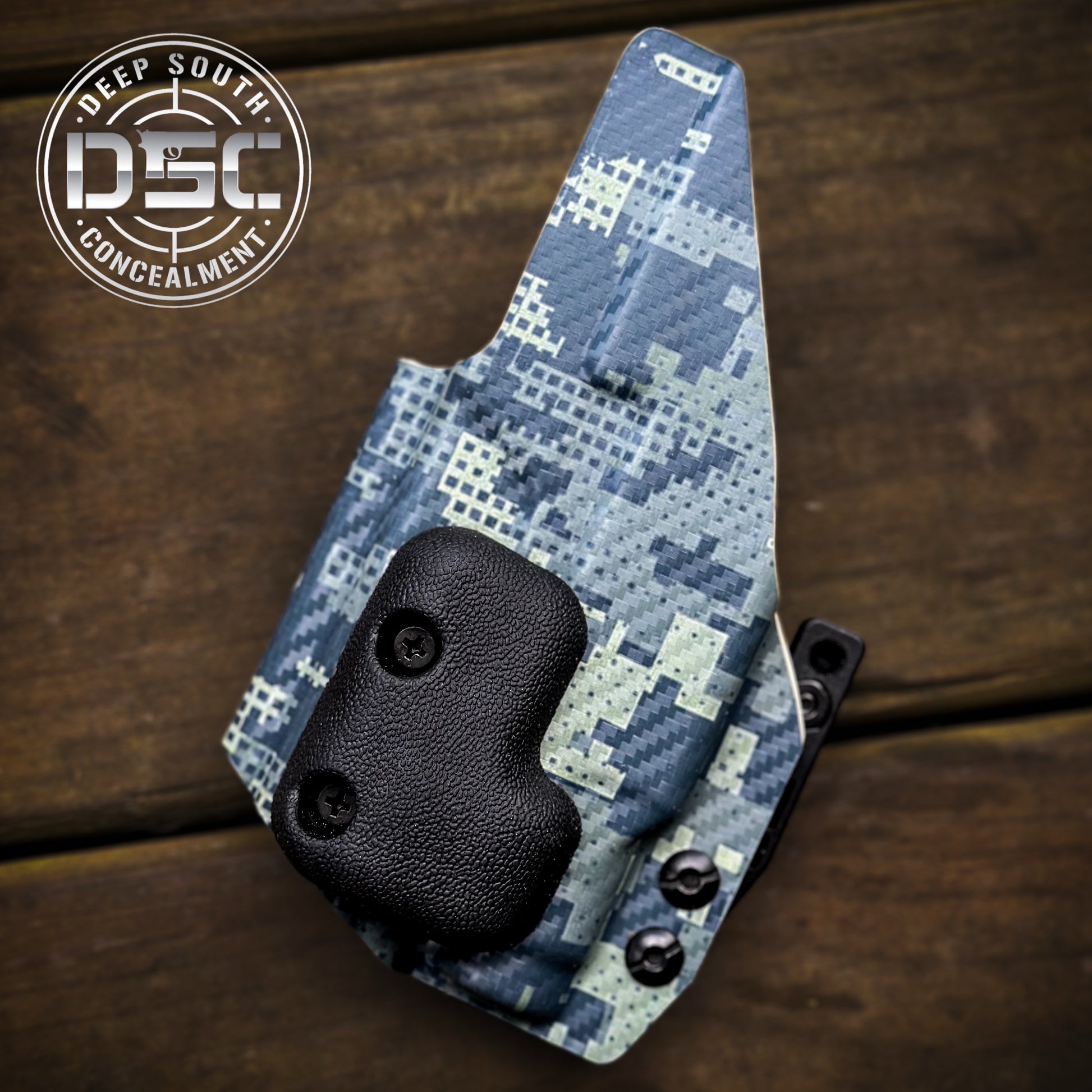 Our IWB holsters are handcrafted from high quality .080 thick material for long lasting durability while maintaining comfort and firearm protection in a lightweight design. Each holster comes standard with adjustable retention that allows adjustment to preference. If you need any help with your order or have questions, please feel free to contact us. *All of our products are warrantied against manufacturing defects.