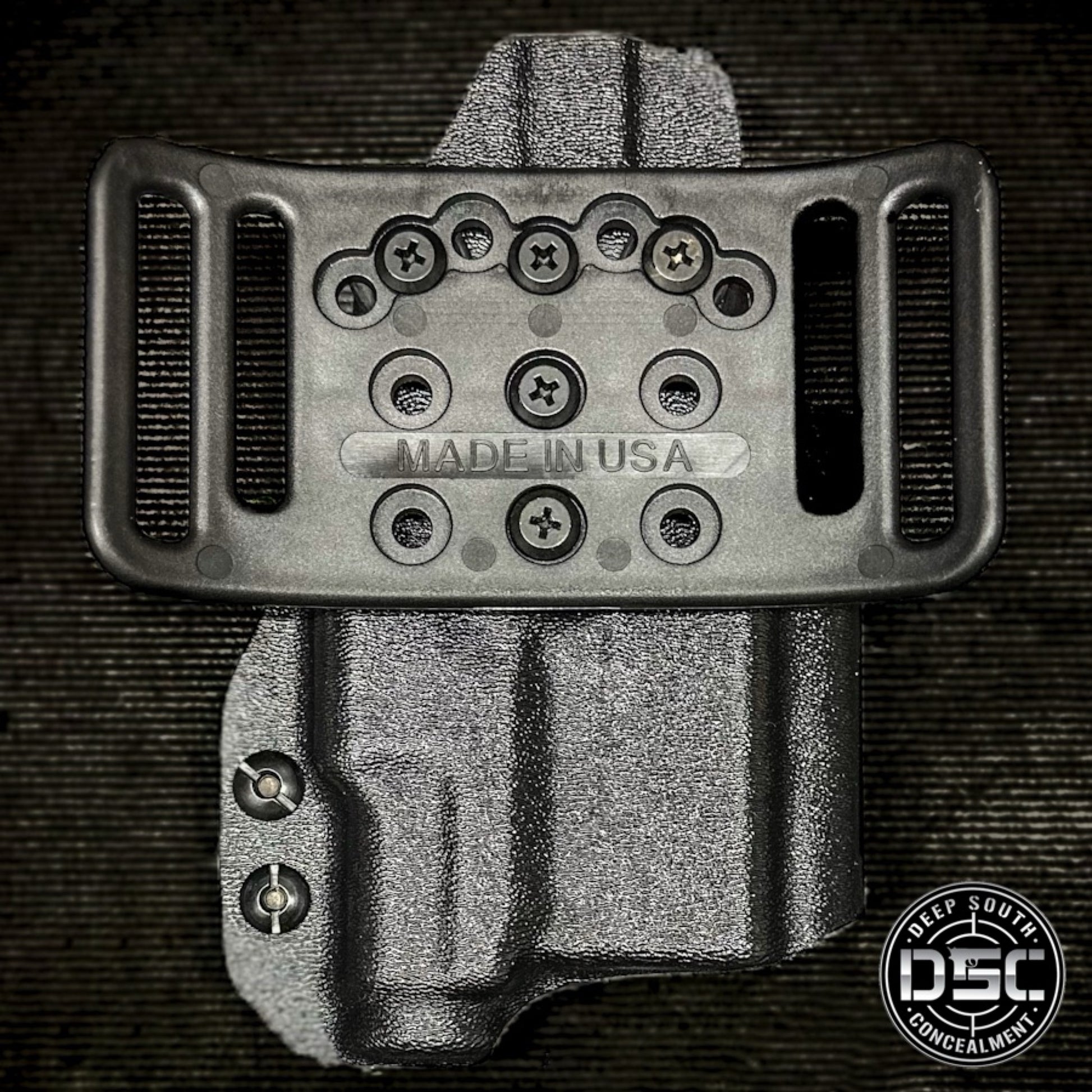 Our OWB holsters are handcrafted from high quality .080 thick material for long lasting durability while maintaining comfort and firearm protection in a lightweight design. Each holster comes standard with adjustable retention that allows adjustment to preference. If you need any help with your order or have questions, please feel free to contact us.