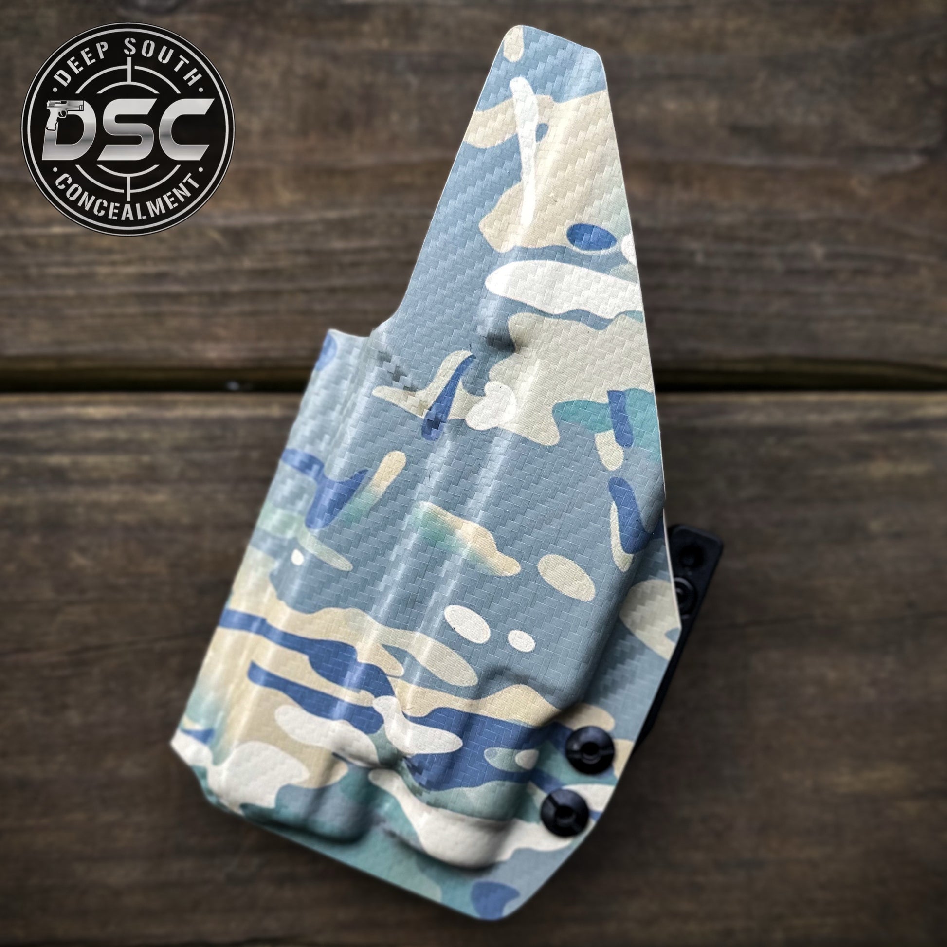 Our IWB holsters are handcrafted from high quality .080 thick material for long lasting durability while maintaining comfort and firearm protection in a lightweight design. Each holster comes standard with adjustable retention that allows adjustment to preference. If you need any help with your order or have questions, please feel free to contact us. *All of our products are warrantied against manufacturing defects.