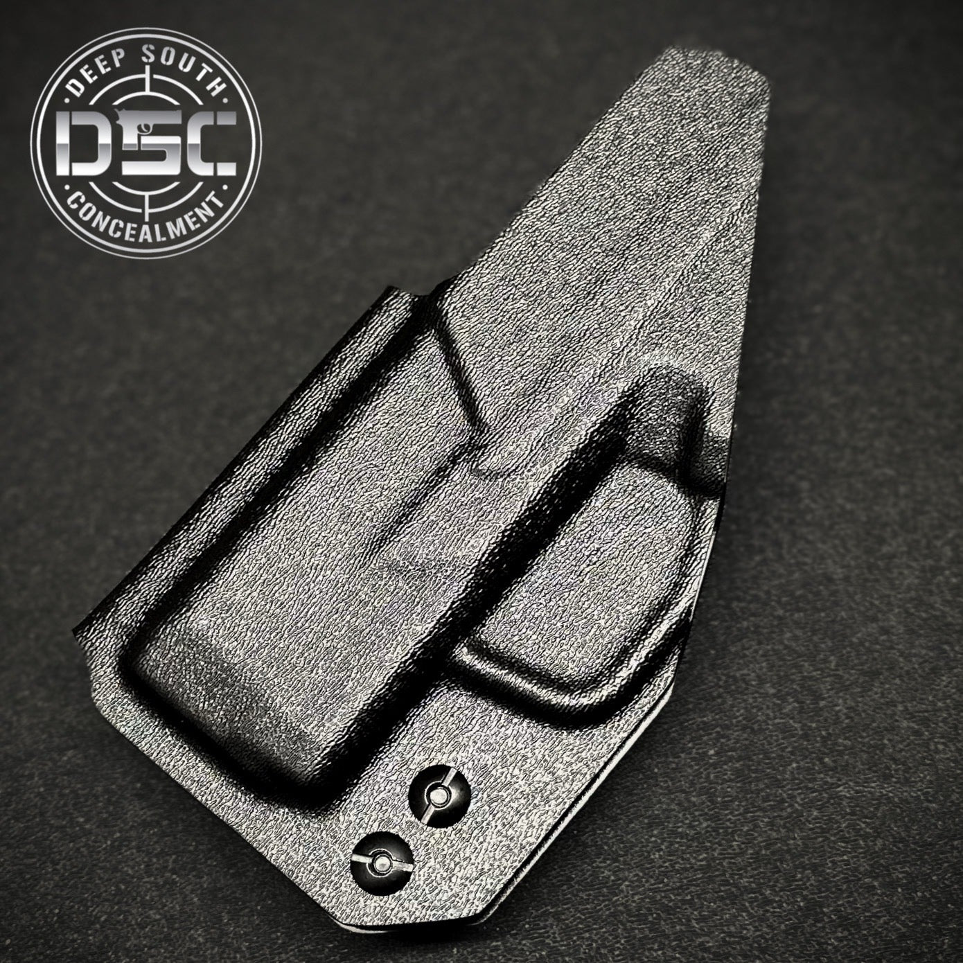 Our IWB holsters are handcrafted from high quality .080 thick material for long lasting durability while maintaining comfort and firearm protection in a lightweight design. Each holster comes standard with adjustable retention that allows adjustment to preference. If you need any help with your order or have questions, please feel free to contact us.