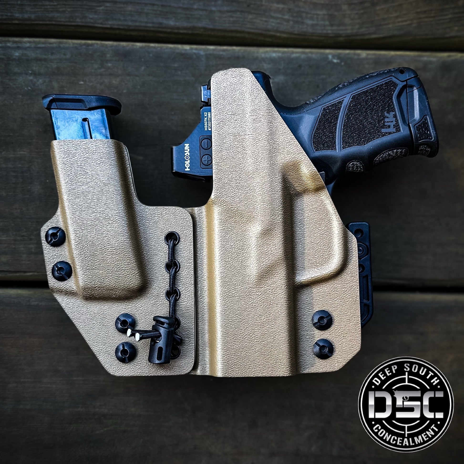 Add-Ons: Dual Discreet Carry Concepts HLR Belt Clips, Mod-Wing Concealment Claw, Coyote Brown Finishing Washers, Military Grade Shock Cord