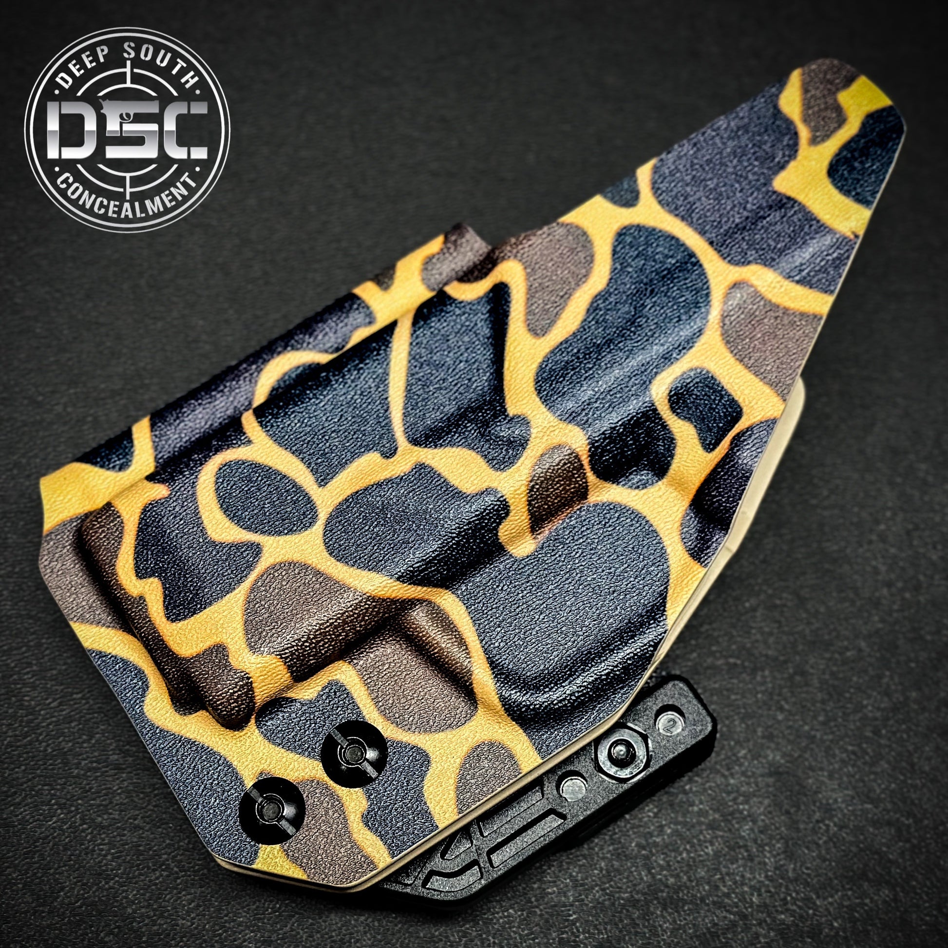 Our IWB holsters are handcrafted from high quality .080 thick material for long lasting durability while maintaining comfort and firearm protection in a lightweight design. Each holster comes standard with adjustable retention that allows adjustment to preference. If you need any help with your order or have questions, please feel free to contact us.