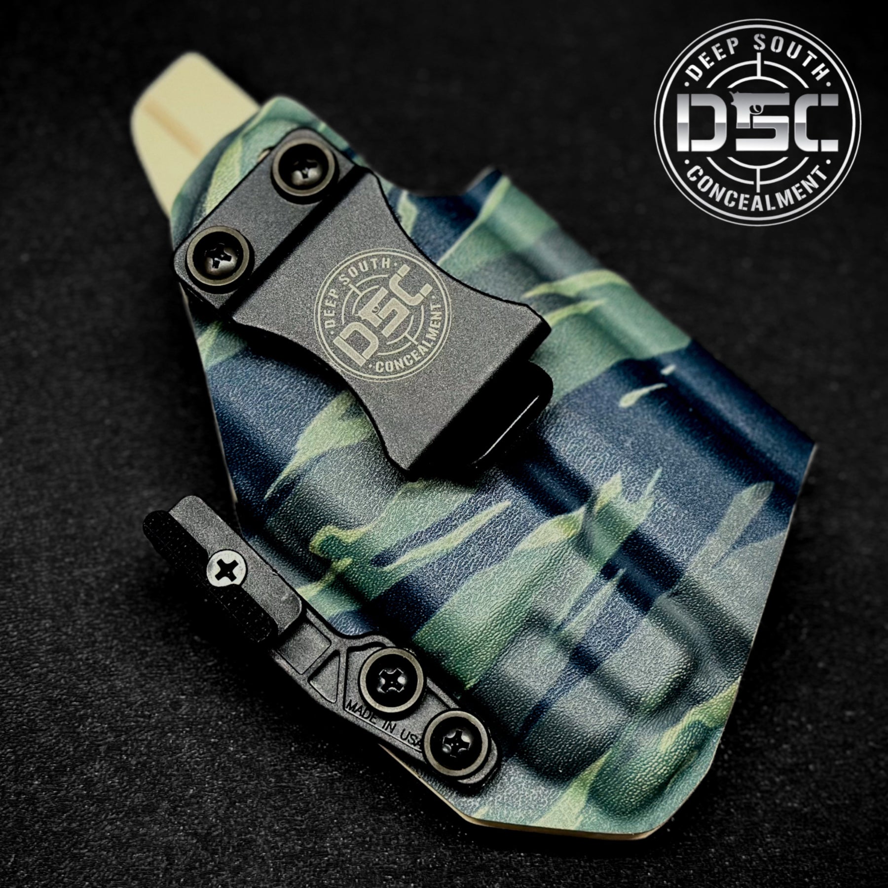 Our IWB holsters are handcrafted from high quality .080 thick material for long lasting durability while maintaining comfort and firearm protection in a lightweight design. Each holster comes standard with adjustable retention that allows adjustment to preference. If you need any help with your order or have questions, please feel free to contact us.