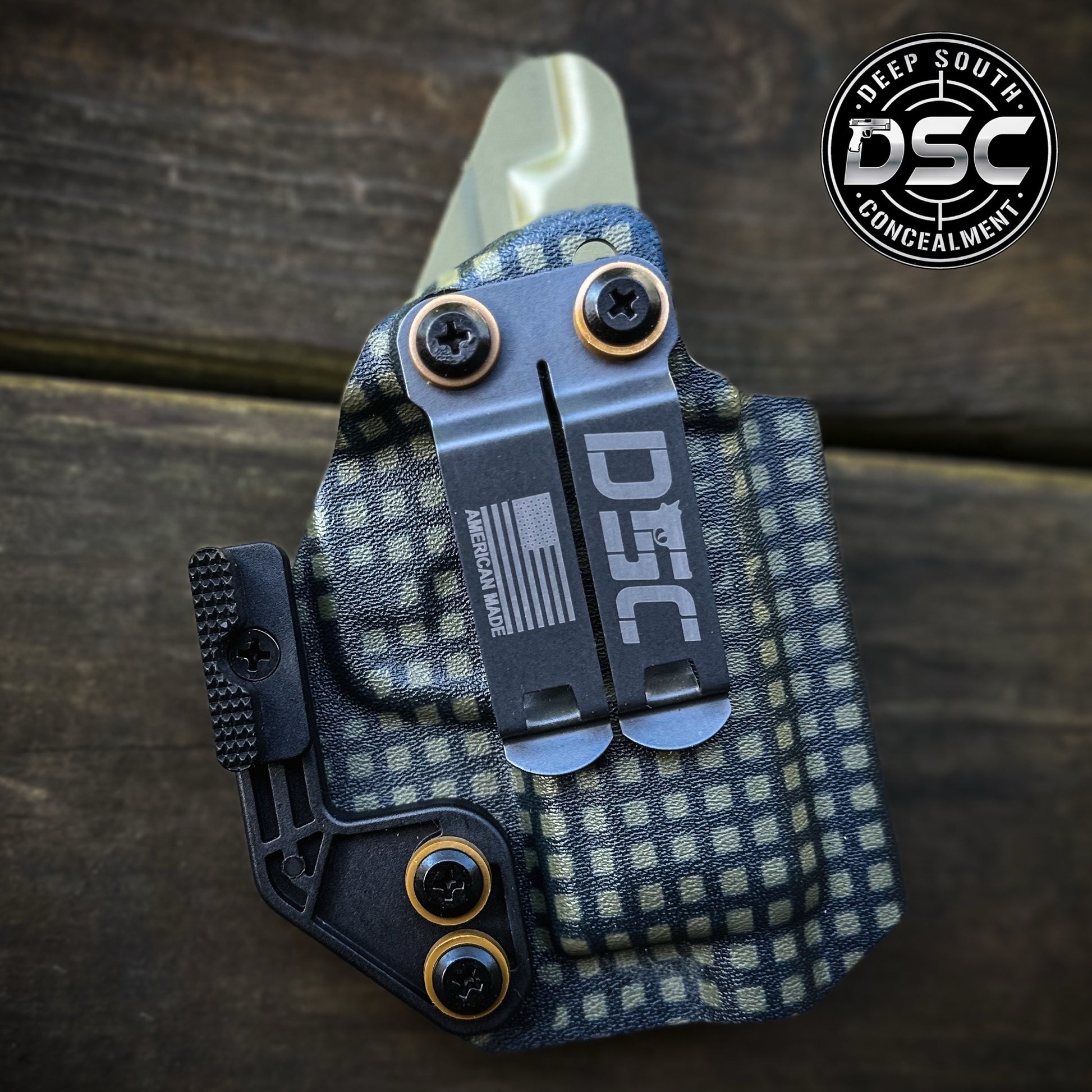 Add-Ons: Discreet Carry Concepts Monoblock Belt Clip, Concealment Claw, Coyote Brown Finishing Washers