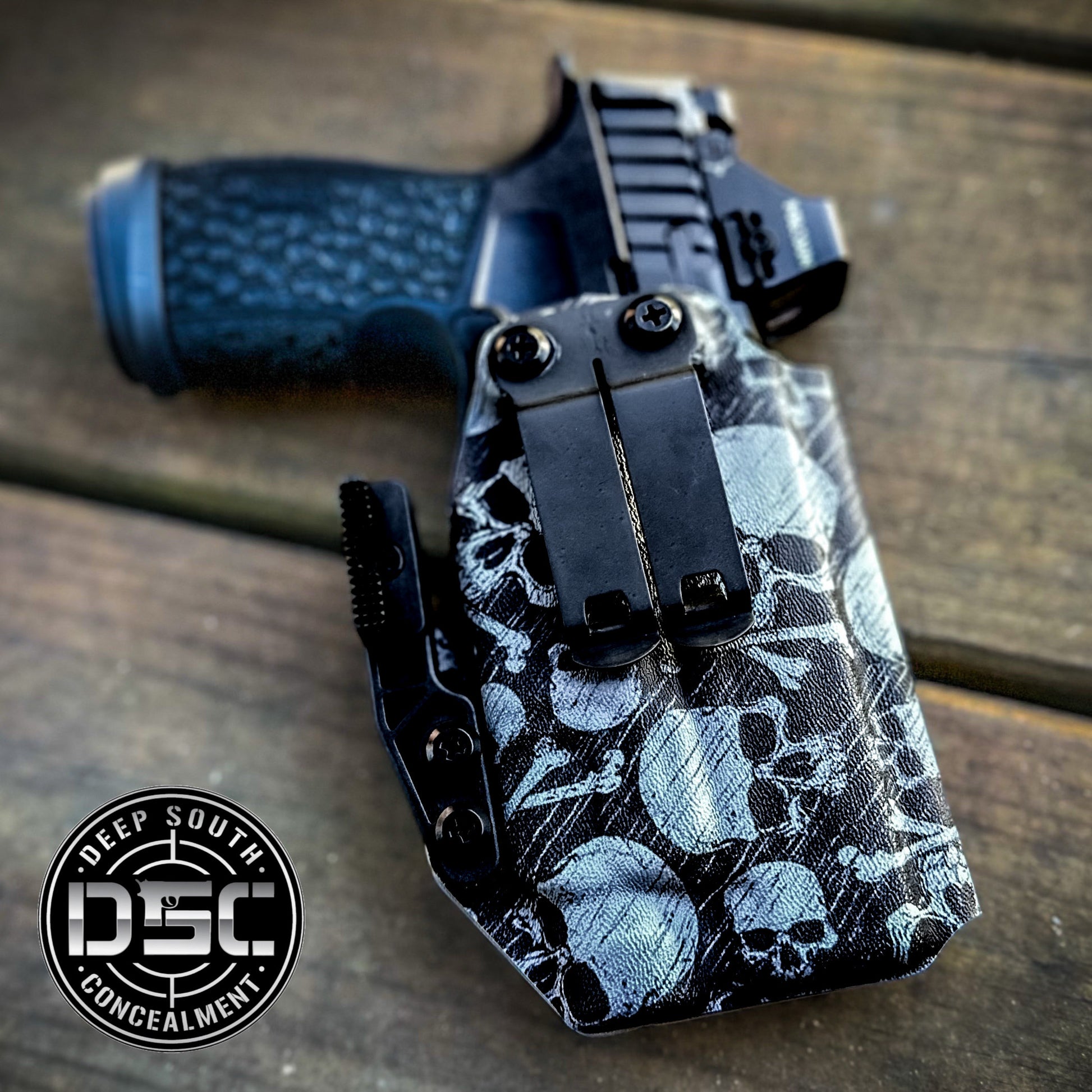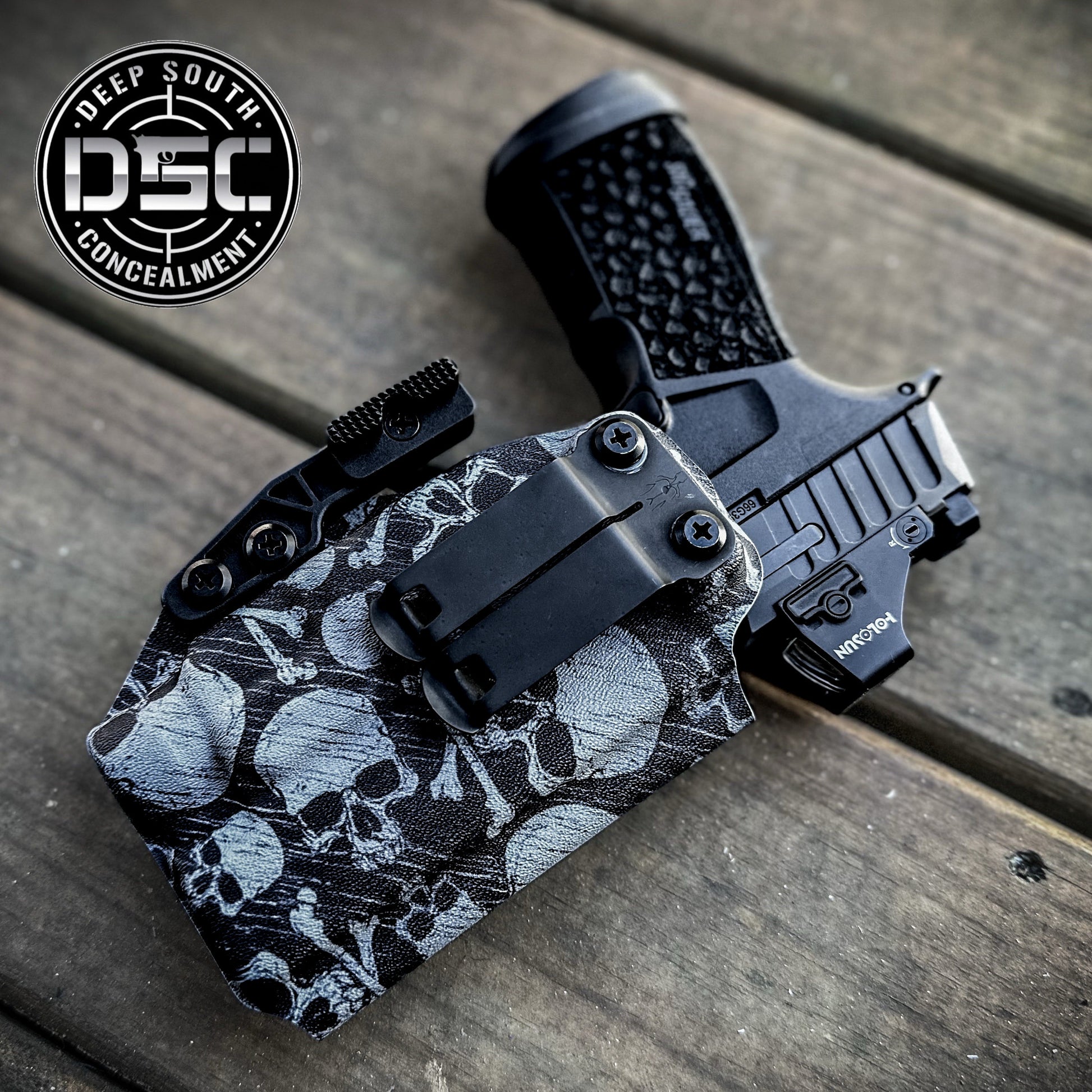 Our IWB holsters are handcrafted from high quality .080 thick material for long lasting durability while maintaining comfort and firearm protection in a lightweight design. Each holster comes standard with adjustable retention that allows adjustment to preference. If you need any help with your order or have questions, please feel free to contact us.
