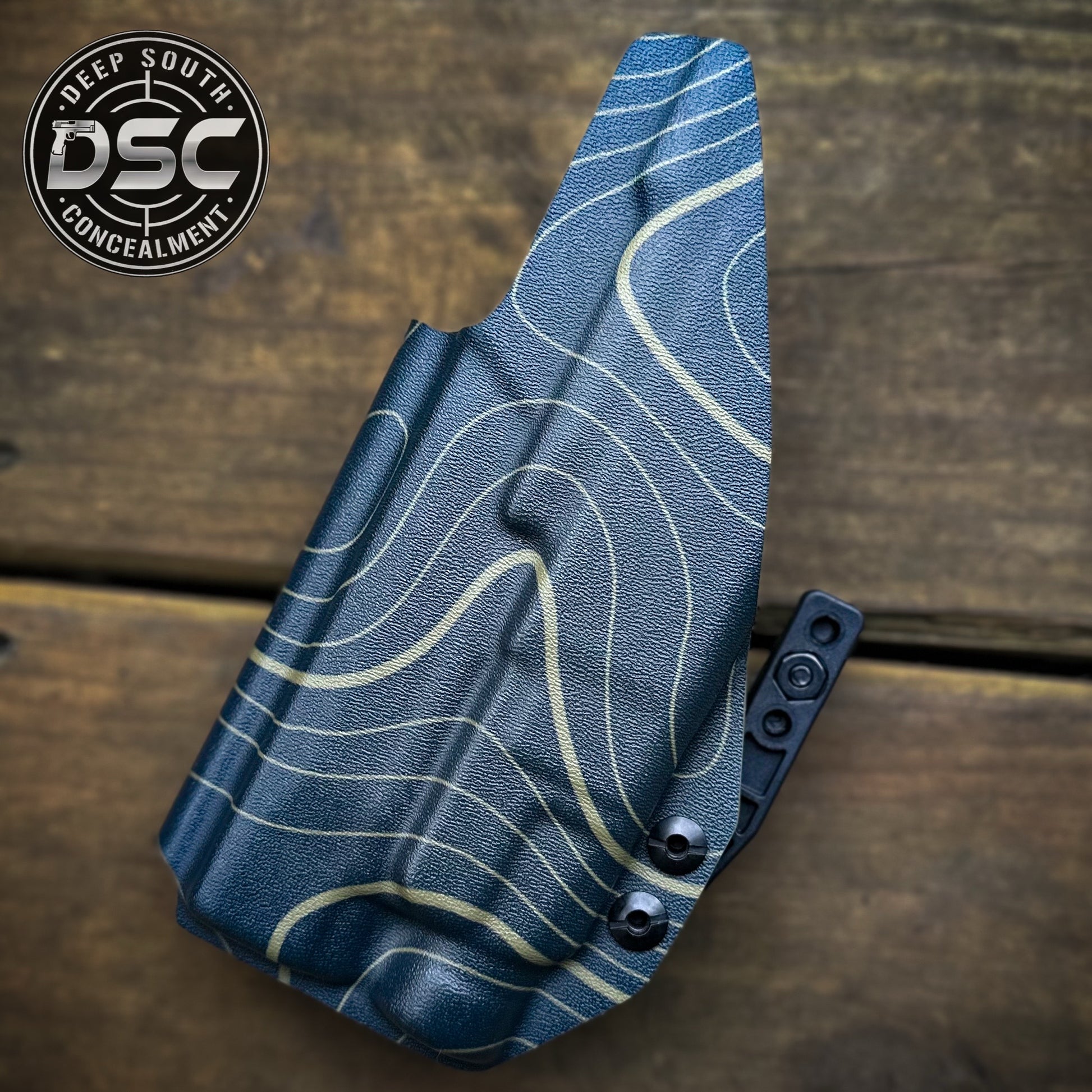 Our IWB holsters are handcrafted from high quality .080 thick material for long lasting durability while maintaining comfort and firearm protection in a lightweight design. Each holster comes standard with adjustable retention that allows adjustment to preference. If you need any help with your order or have questions, please feel free to contact us.