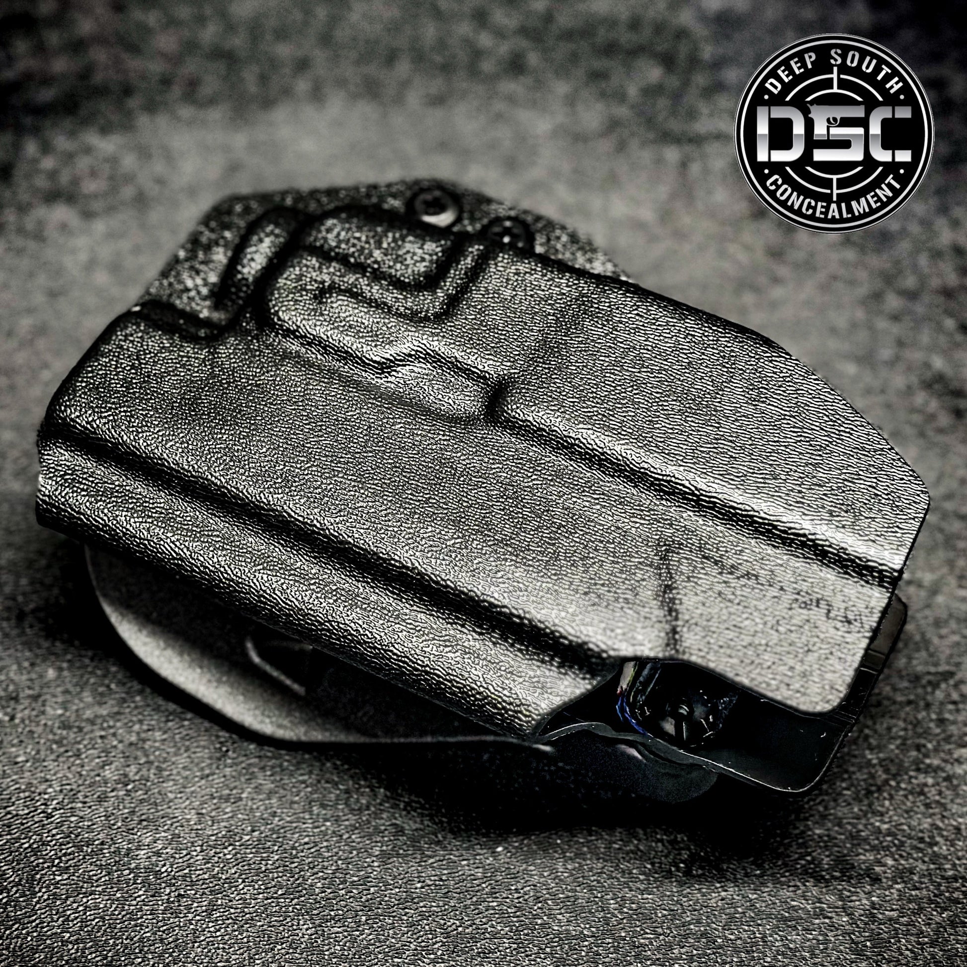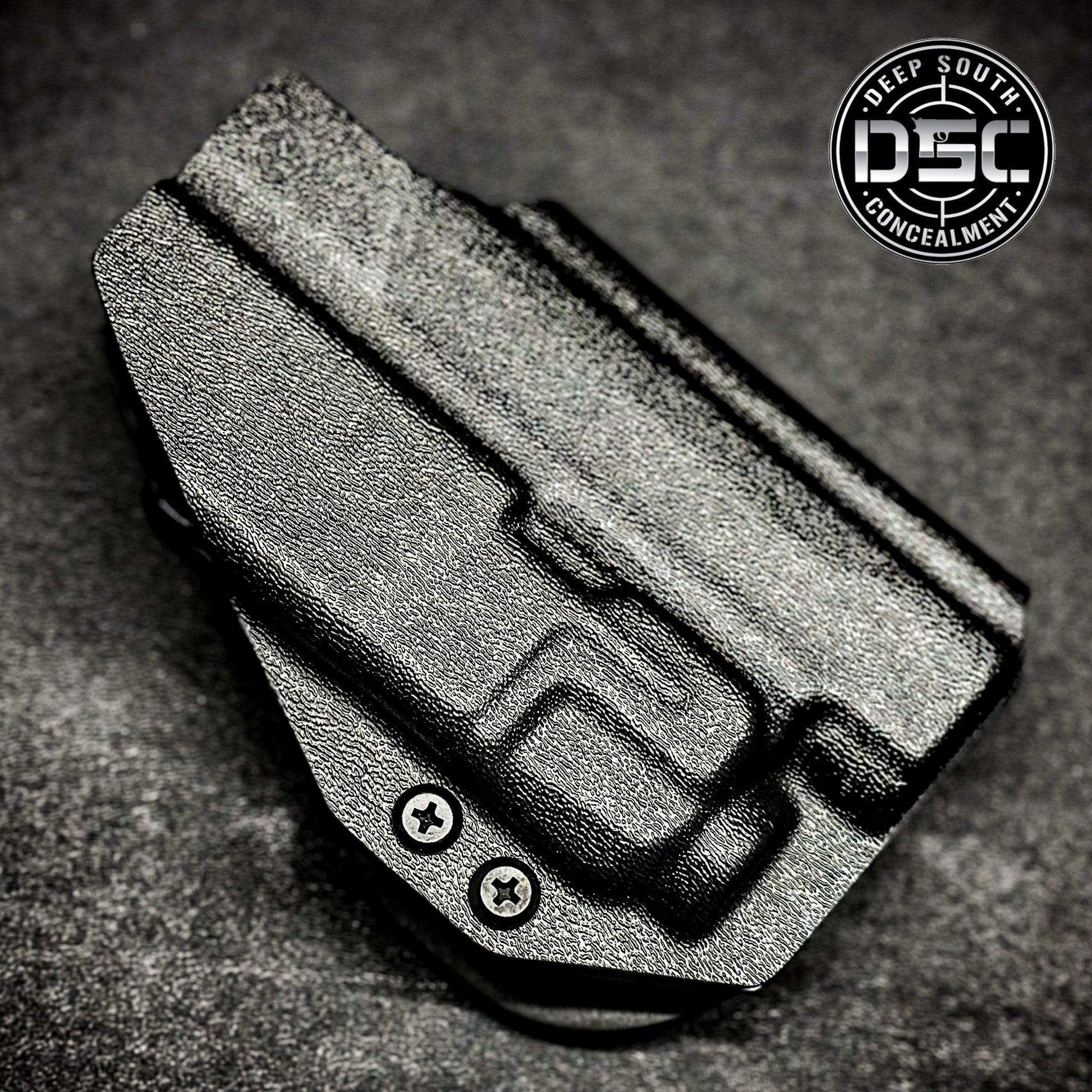 Our IWB holsters are handcrafted from high quality .080 thick material for long lasting durability while maintaining comfort and firearm protection in a lightweight design. Each holster comes standard with adjustable retention that allows adjustment to preference. If you need any help with your order or have questions, please feel free to contact us.