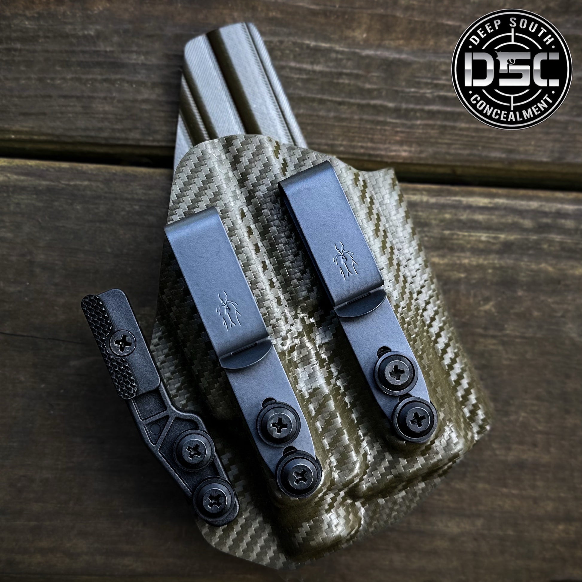 Add-Ons: Discreet Carry Concepts metal strut style belt clip, concealment wing, od green finishing washers