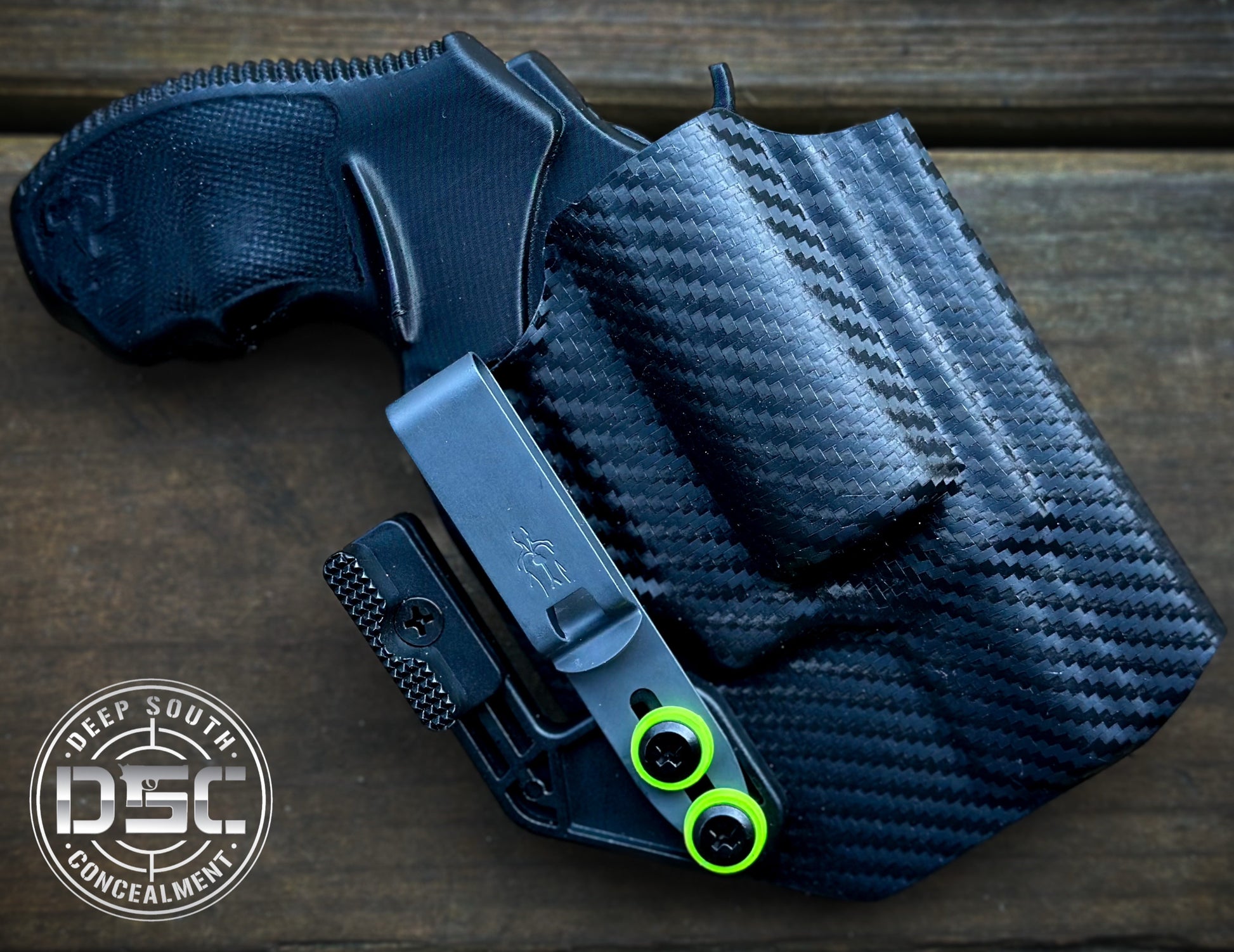Add-ons: Discreet Carry Concepts HLR Belt Clip, Mod-Wing Concealment Wing, Neon Green Finishing Washers
